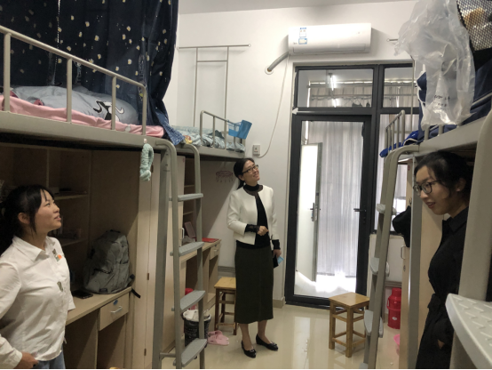 下午15时,艺术传媒学院党委副书记沙渺带领2020级辅导员一同前往宿舍走访慰问新生,询问了新生们的入校适应情况,并亲切地同新生交谈,悉心询问他们家乡在哪里、防护措施用具是否完备,并且提醒大家要提高自我保护意识和警觉意识,不要轻易相信来宿舍推销人员,重点强调了人身安全和财产安全问题。除此之外,他们还鼓励同学们在学业之余发展才艺爱好,参加多姿多彩的社团活动和体育活动,提高个人综合素质,追求自身全面发展。