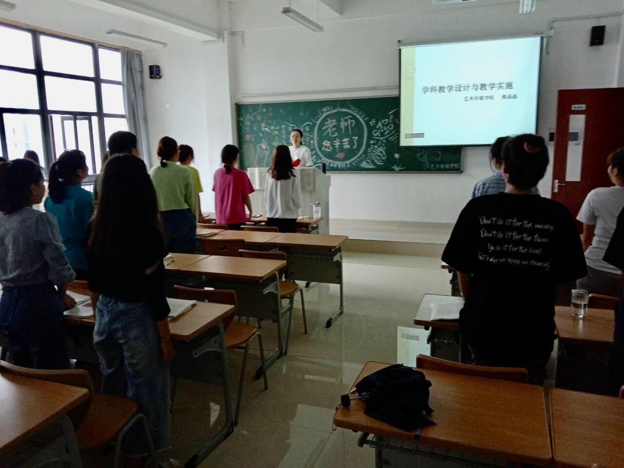 于此同时,滨湖校区的艺传学子们早早来到教室,亲手绘制了教师节板报,老师上课前,同学们集体起立,整齐划一的喊出了对老师深深的祝福,祝愿老师教师节快乐,饱含深情、铿锵有力。