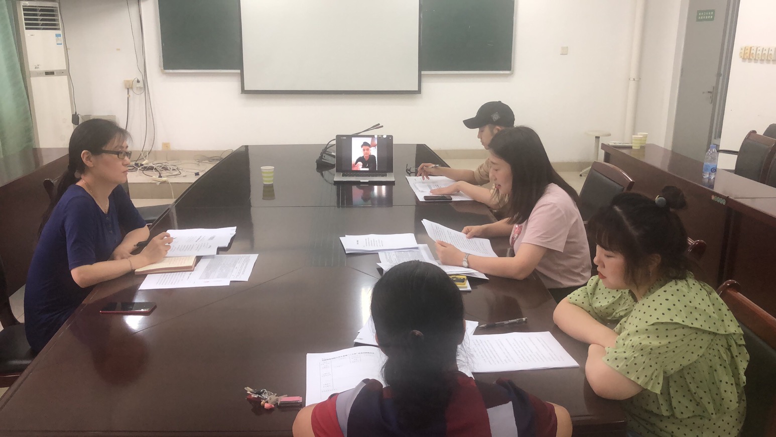 本网讯 7月11日下午,艺术传媒学院在艺术楼202召开专题会议研究部署团的工作,听取上半年工作汇报并研究部署下阶段工作。会议由党委副书记沙渺主持,院长潘望森、院总支秘书徐皖霞、学院分团委书记戴玉佩、兼职副书记朱宇迪、19级辅导员潘文锦参加会议,分团委学生副书记、院学生会主席郭聪通过在线平台“云”参加了此次会议。