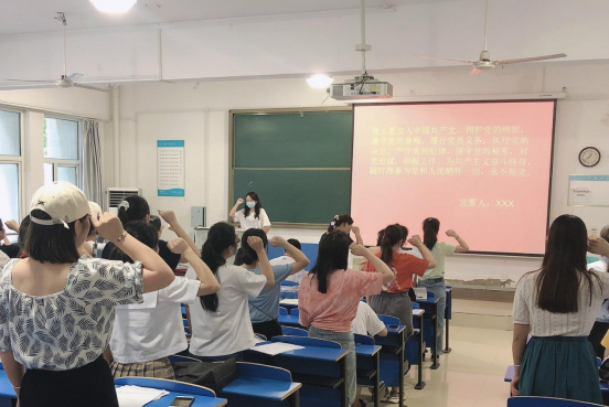 本网讯 6月29日下午,外国语学院学生党支部在逸夫楼105举办了毕业生党员座谈会及重温入党誓词的活动,支部书记方媛主持会议。