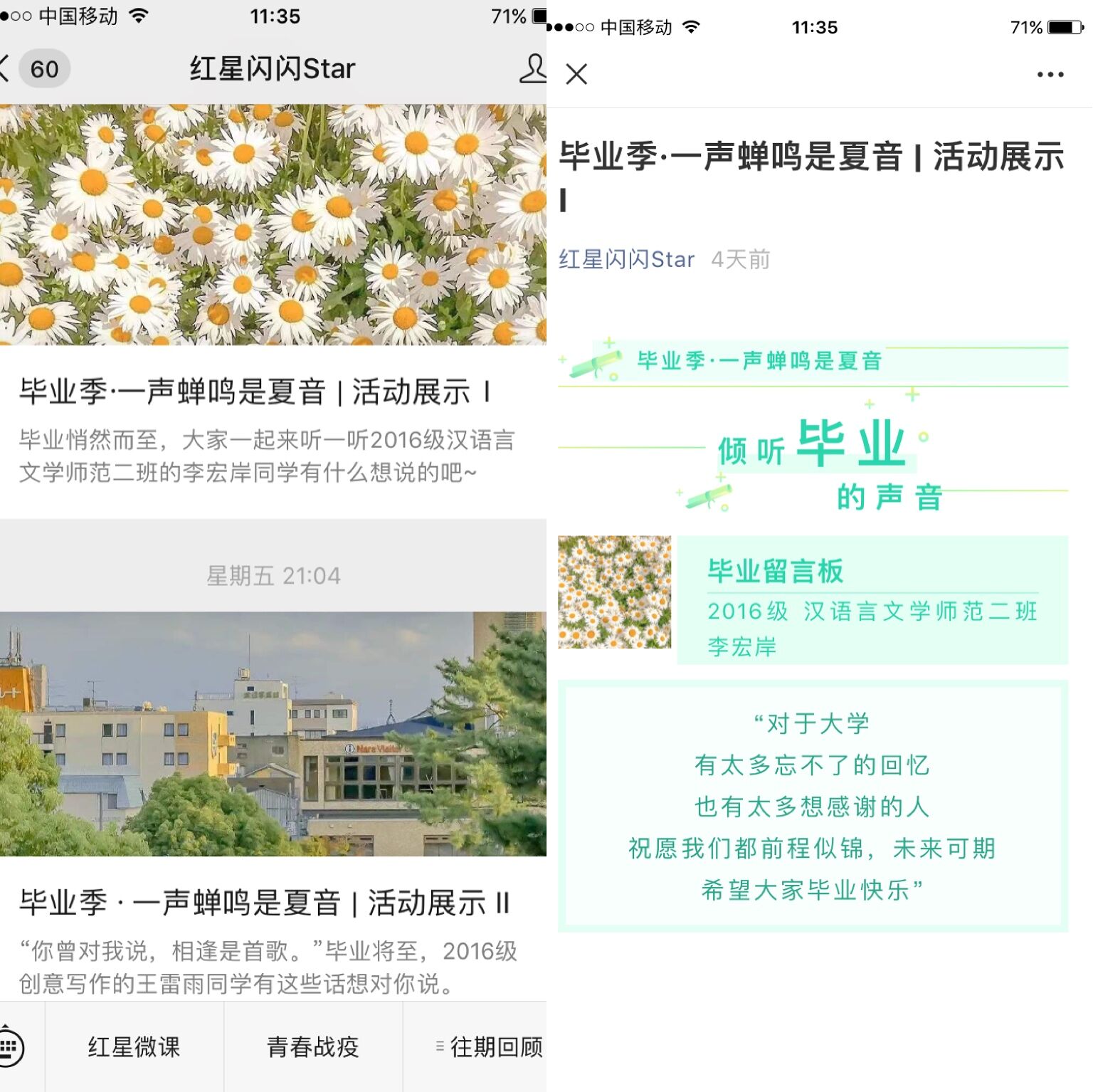 落实诚信感恩教育。为引导毕业生心系母校、情留母校,强化爱校尊师意识,文学院2020届毕业班纷纷以“毕业纪念云视频”、“毕业季·一声蝉鸣是夏音(毕业云赠言)”等活动向母校倾诉最后的声音,感念老师培育之恩,感谢同学互助之情。同时,毕业班辅导员以线上班会的形式落实好资助政策两节课,并结合毕业生签约、毕业考试等,加强诚信教育,引导毕业生诚实守信、践诺守约。