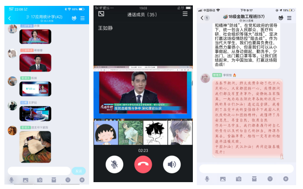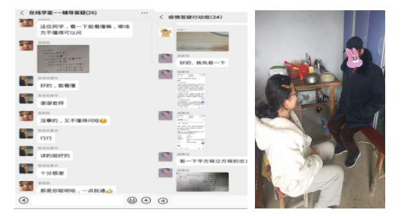 2017级经济统计班王国庆、2018级数学与应用数学师范班张盛龙、2018级金融工程班肖丹丹等7人组成支教团队,在疫情期间开设“行知在线学堂”为中小学生提供线上课业辅导,宣传防疫知识,同时对小学员们进行爱国主义教育;2018级数学与应用数学师范班共开设3个线上行知学堂为广大医护、社区防疫工作人员和贫困家庭学生提供免费课业辅导等服务,同时在雷锋月期间为小学员们讲述身边的雷锋故事,传承雷锋精神,弘扬社会主义核心价值观。疫情稳定后,2018级数学与应用数学师范班刘琦定期到村里孤寡老人家中,进行疫情防控知识宣传的同时帮助老人做家务、陪伴老人谈心,力所能及地帮助身边的困难群体,践行雷锋精神。通过参与公益志愿服务,广大学子用红色青春凝聚战斗力量,在抗“疫”战场践行初心使命。