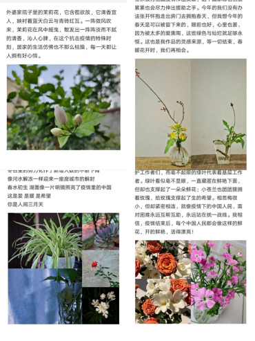 此次比赛首先由选手进行绿植的布置与拍摄,并附上一段作品的文字描写,说明作品的寓意,再把作品交给相关的负责人。比赛的消息一发出来,就有很多同学踊跃报名,每位选手都用心捕捉生活中的美,寓意新颖,表达了选手内心的爱与期望。有的表达了对祖国的美好祝愿,有的表达了对一线人员精神的赞美,也有的作品表达了自己对生活的感悟。