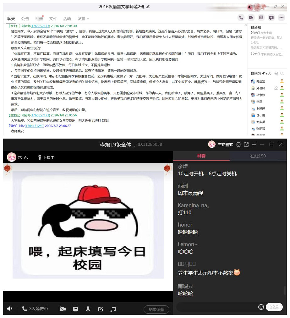 本次线上主题班会,文学院各年级辅导员按照学校学院要求,利用多种网络平台资源积极开展形式多样、内容丰富的线上主题班会。