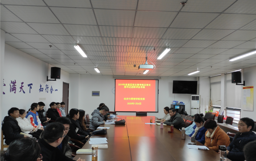 本网讯 1月6日下午,经济与管理学院召开支部书记抓党建述职评议考核暨2019年度基层党支部考核工作会议,学院党委、副书记、委员、秘书、分工会、分团委负责人、党支部委员、党员师生代表等参加会议。
