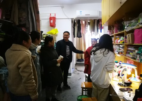 在李新宇的带领下,老师们分工明确,有针对性地逐一深入宿舍进行检查。检查过程中,同学们积极配合接受检查,大多数寝室床铺收拾较为平整,书本摆放整齐,无异味,无私拉乱接电线和使用违禁电器等情况;但也有极少数宿舍存在卫生状况较差等现象,经老师们现场指出问题所在,备查宿舍立马进行了整改。老师们每到一间宿舍,亲切问候了正在备考的同学,反复叮嘱他们要合理安排时间,期末考试在即,大家要科学安排学习、复习、考试、出行、饮食、人身财产安全等事项,要将安全意识牢记心中、牢记始终。