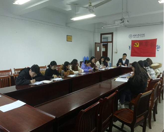会上,支部书记屠家宝带领全体参会同学回顾了“不忘初心、牢记使命”主题教育专题学习、研讨和活动情况,勉励同志们深入学习不放松、身体力行不松懈,才能理想信念不动摇、牢记使命不忘本。胡悦、戴岳松等同志表示将继续按照优秀党员的标准严格要求自己,自觉学习贯彻习近平新时代中国特色社会主义思想,坚定理想信念;坚持学、思、用融会贯通,知、信、行有机统一,自觉践行党的根本宗旨,学习工作有担当。