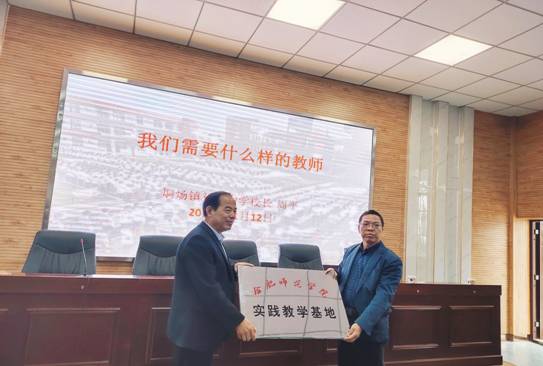 在新媒体教室的见面会中,李二保副校长首先介绍了烔炀初级中学的发展历史及近年来取得的辉煌成绩,并着重介绍了该校先进教学理念与方法。接着,文学院何旺生副院长与周平校长共同主持了beat365唯一官方网站烔炀初级中学实践教学基地的授牌仪式。双方共同表达了加强合作,在今后的教育教学改革浪潮中携手并肩,结成互促互进的利益共同体,使各自的教育教学工作更上台阶的良好愿望。