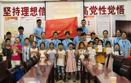 外国语学院“古埂社区行知学堂”已开办八年,学堂的开展得到了外国语学院领导和社区党委的高度重视,也获得了社区居民的广泛认可,曾多次被《安徽日报》、新华网、肥西电视台等多家媒体报道,产生了一定的社会影响力。此次行知学堂活动也在小先生们的辛勤劳动和大家的共同努力下完美落下帷幕。(外国语学院:周贵勤 李朝阳)