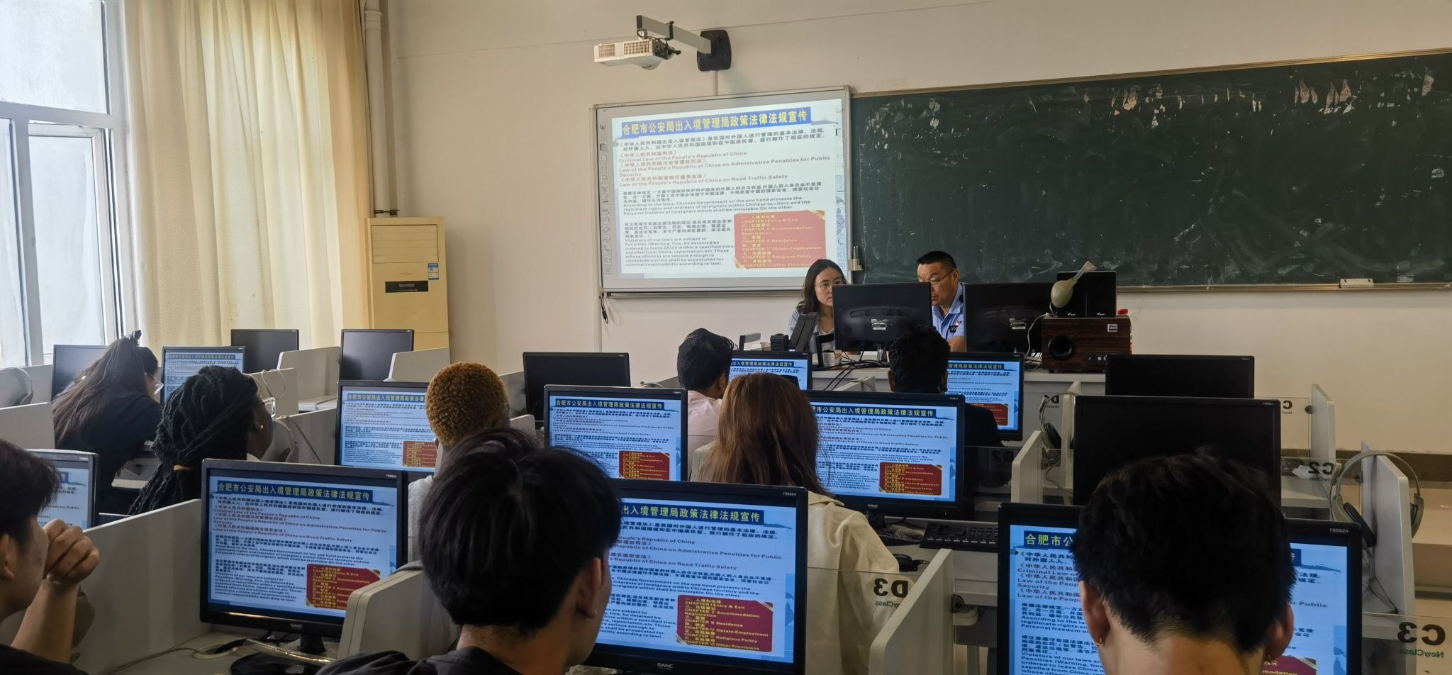 9月27日,国际教育学院邀请了合肥市公安局经开分局的警官一行3人,为留学生新生开展普法教育、安全教育讲座。通过警官们专业细致的讲解及耐心的解答,留学生详细了解了出境、入境、住宿登记、居留、就业、宗教政策等方面的出入境法律法规及在华学习注意事项。