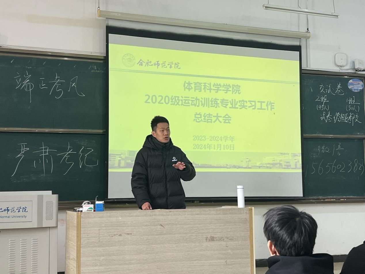 1月10日上午,体育科学学院2020级运动训练专业实习总结大会在博约楼101教室召开。运动训练系党支部书记陈秀、运动训练系副主任廖顺建、毕业班辅导员张康康及2020级运动训练专业全体学生参加总结大会。