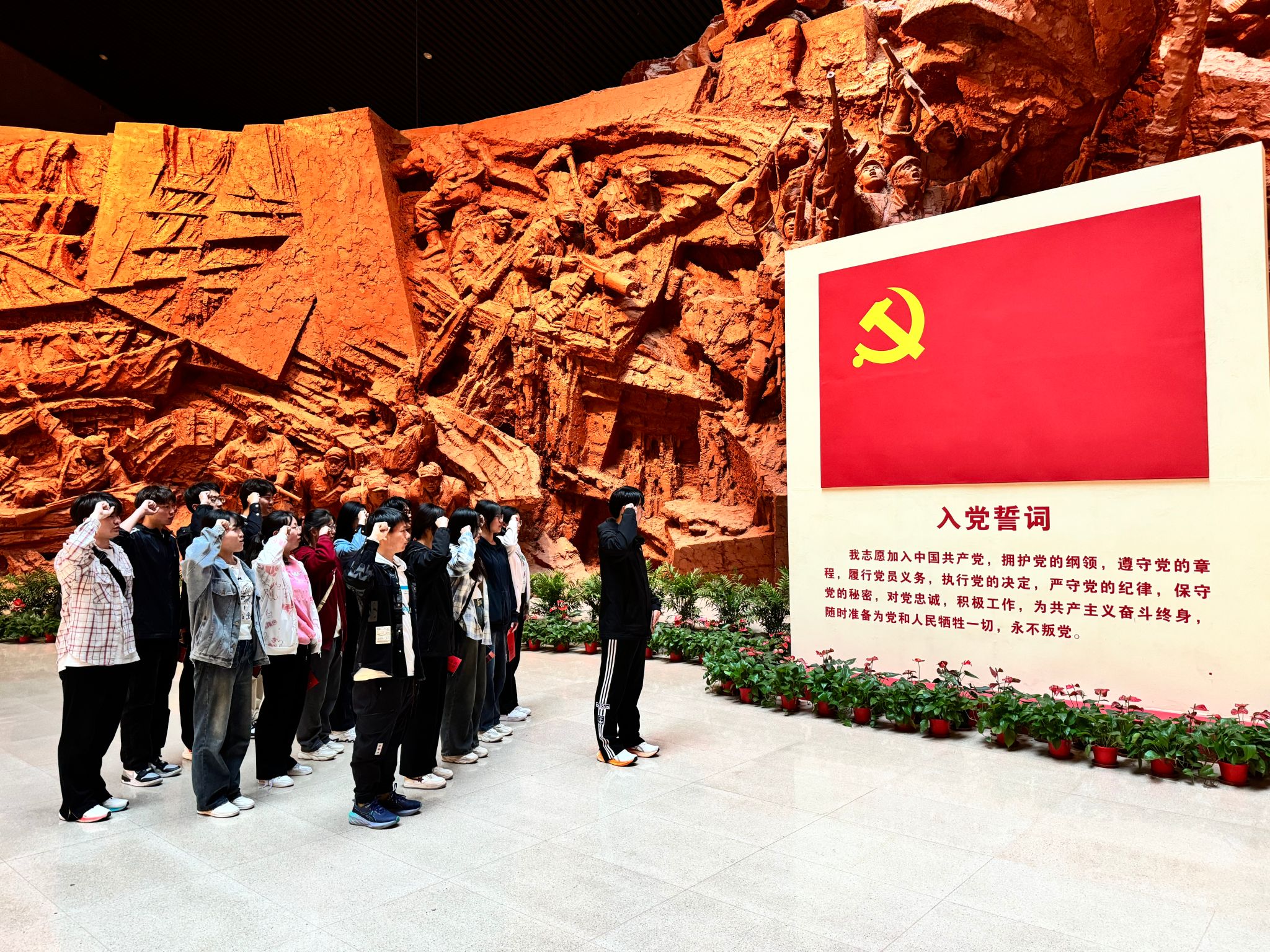 渡江战役纪念馆是国内规模最大、史料最全的纪念渡江战役的历史专题场馆,巨大的馆身犹如两艘雄伟战舰行驶在浩瀚的水面。在纪念馆内,学员们沉浸式参观了战前形势、战役准备、突破江防、战役胜利、人民支前和英烈业绩六个展厅以及烈士名录厅和毛泽东家风专题临时展,馆内展出的大量珍贵革命文物、照片、文字、影像资料,全面展示了渡江战役的历史背景、战术部署和战斗过程,引领学员们走进波澜壮阔的历史,感悟革命先辈们无私奉献的精神和高尚品格,激发大家的爱国热情。参观结束后,全体学员在《胜利之师》浮雕前进行入党宣誓。
