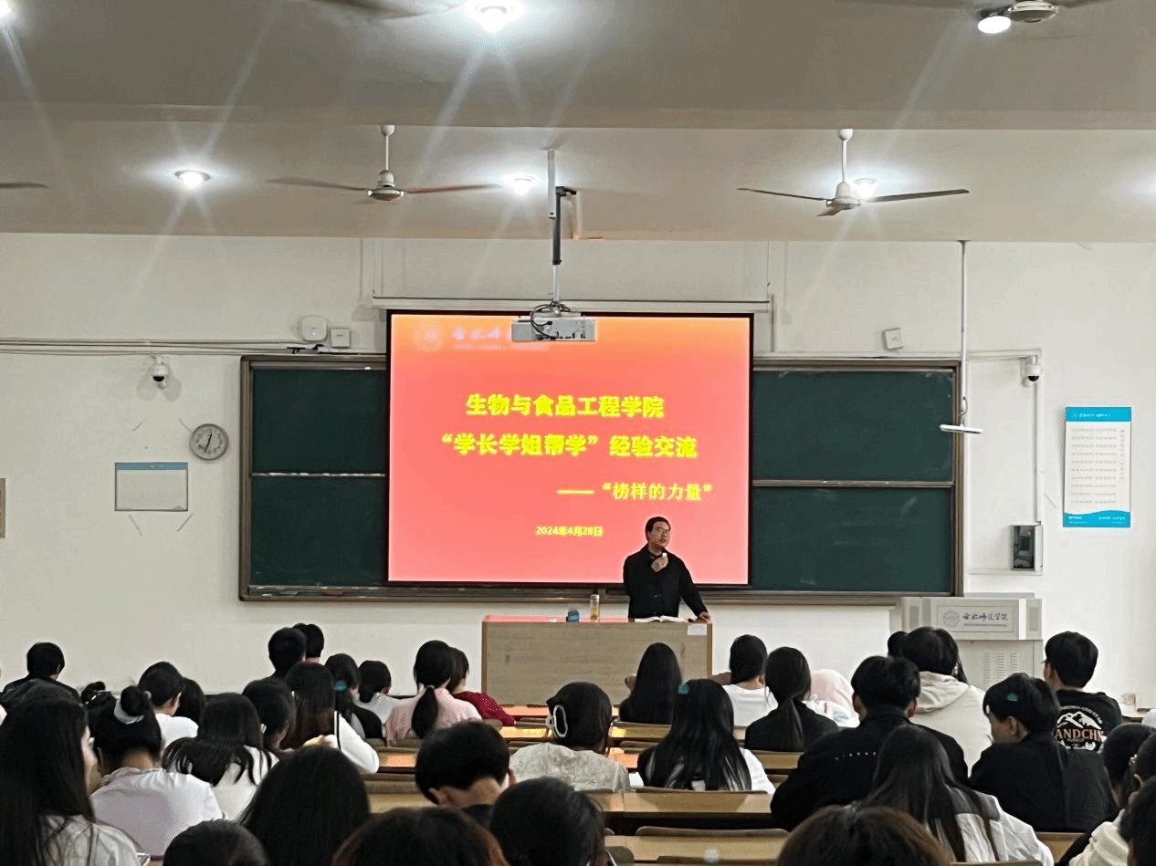 为充分发挥优秀毕业生的成长导向作用,引导在校生传承我院学子优秀学习经验和精神品质,生物与食品工程学院于4月28日在博约楼108教室开展了“学长学姐帮学”成长经验交流分享活动。活动邀请了学院2020届优秀毕业生李启航、金玮同学做经验分享,300余名同学参加了本次分享会,活动由辅导员周其松主持。