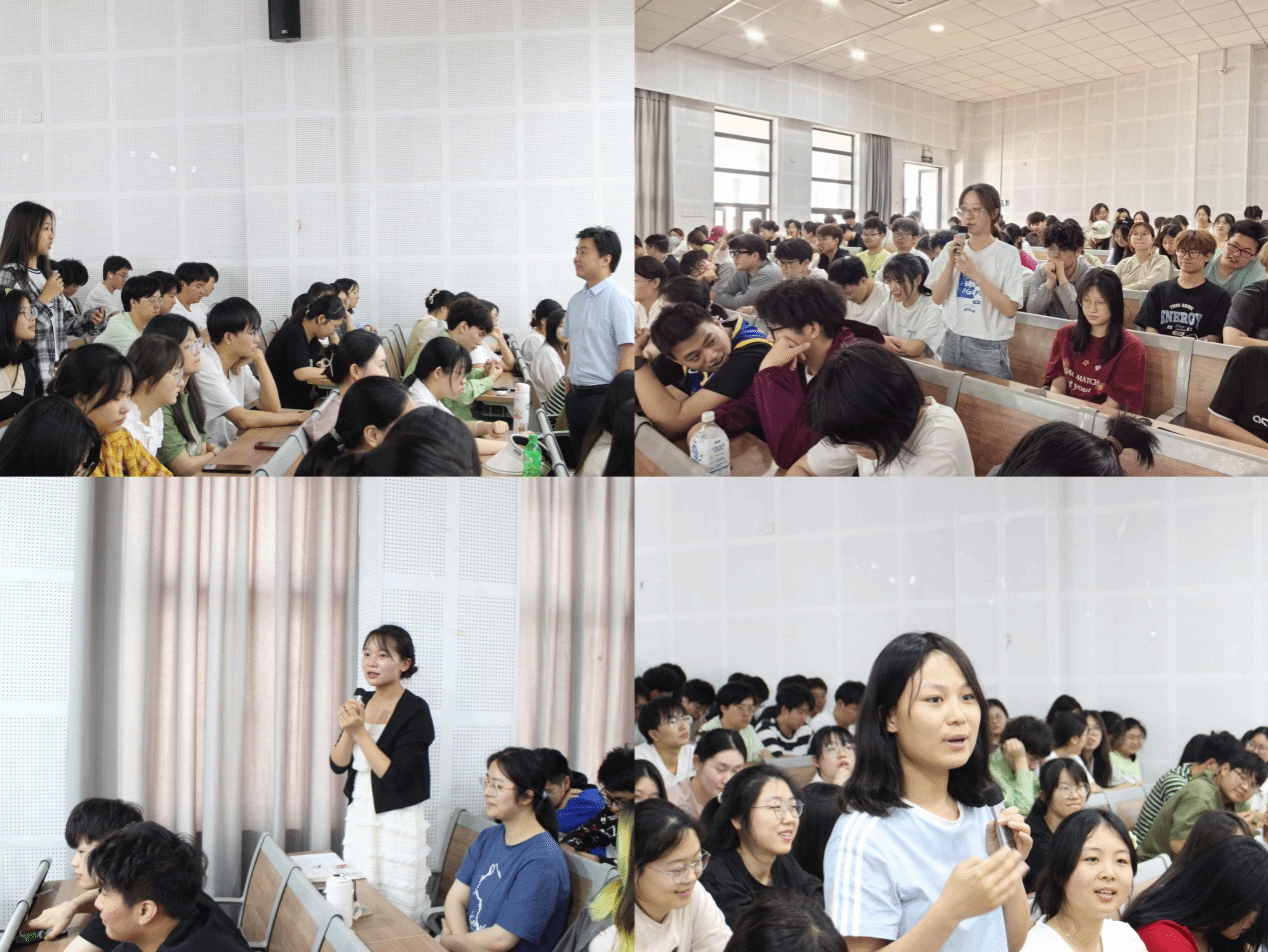 在示范课结束后的点评环节,四位师范生代表分享了自己听课的感受。她们对刘清清老师表示了由衷的感谢,并对她的现场教学给予了高度评价,认为刘老师课堂中的情境引入设计非常新颖,教学过程层层递进,使得知识的传授生动有趣,为师范生们打开了新的视野,激发了学生的学习热情。大一的学生代表张宇洁、张子欣分享感受时说道:虽然我们才大一,没有学过教学论课程,但是通过现场听了刘老师的讲座和示范课后,我们也知道了如何去写教学设计,如何进行无生上课,对于参加校级师范生教学技能竞赛更有信心。