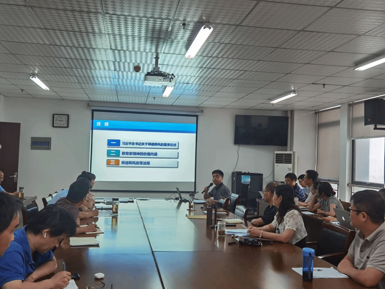 会上,黄浩围绕“习近平总书记关于师德师风的重要论述”“教育家精神的价值内涵”“师德师风政策法规”三个方面进行讲解,并就师德师风建设分享了自己的理解和体会。他强调,做好师德师风建设要加强自身学习,明确哪些要做好,哪些不能做。要树立“躬耕教坛、强国有我”的志向和抱负,大力弘扬践行教育家精神,扎扎实实做好教书育人本职工作,培育教书育人的家国情怀,关心关爱每一位学生,用高尚的人格和崇高的师德去感染学生,赢得学生喜爱。要加强法治教育,提高法律意识和依法从教意识;要严于律己,学在日常、做在日常、严在日常。把学生的事永远摆在首位,上好每一节课,备好每一节课,一点也不能含糊,第一时间回答好学生每一个问题,改好每一份作业,关心、关爱、指导好每一位学生,规范做好试卷、论文等每一项教学档案材料。