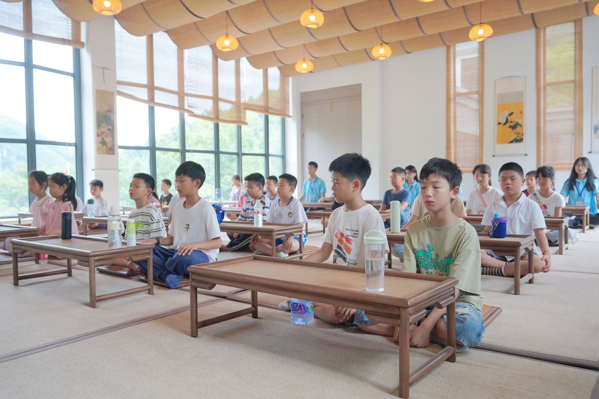 参观过程中,在博物馆工作人员的指导下,小先生有序带领小学员们进入茶室“涤烦”,学习茶艺中的坐姿,冥想静心,让小学员在潜移默化中领会“知茶习礼”、“与人为善,以礼待人”的处世之道,在忙碌的学习生活中找到了放松和愉悦的方式,丰富了暑期的课余生活。