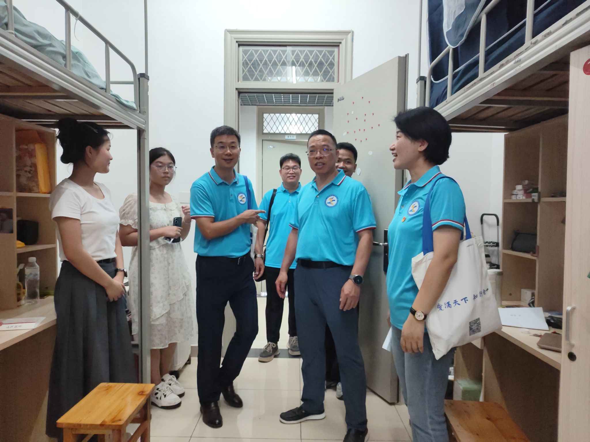 下午,文学院领导许锃、何旺生、夏娟、新生辅导员来到1号楼、5号楼、13号楼看望刚刚来校报到的2024级本科学生,询问学生的来校体验及宿舍入住感受,了解和解决学生当前生活存在的实际困难,提醒学生注重校园安全特别是防范电信诈骗等注意事项,鼓励学生积极转变角色,尽快融入崭新的大学生活。(文学院:王明蕾)