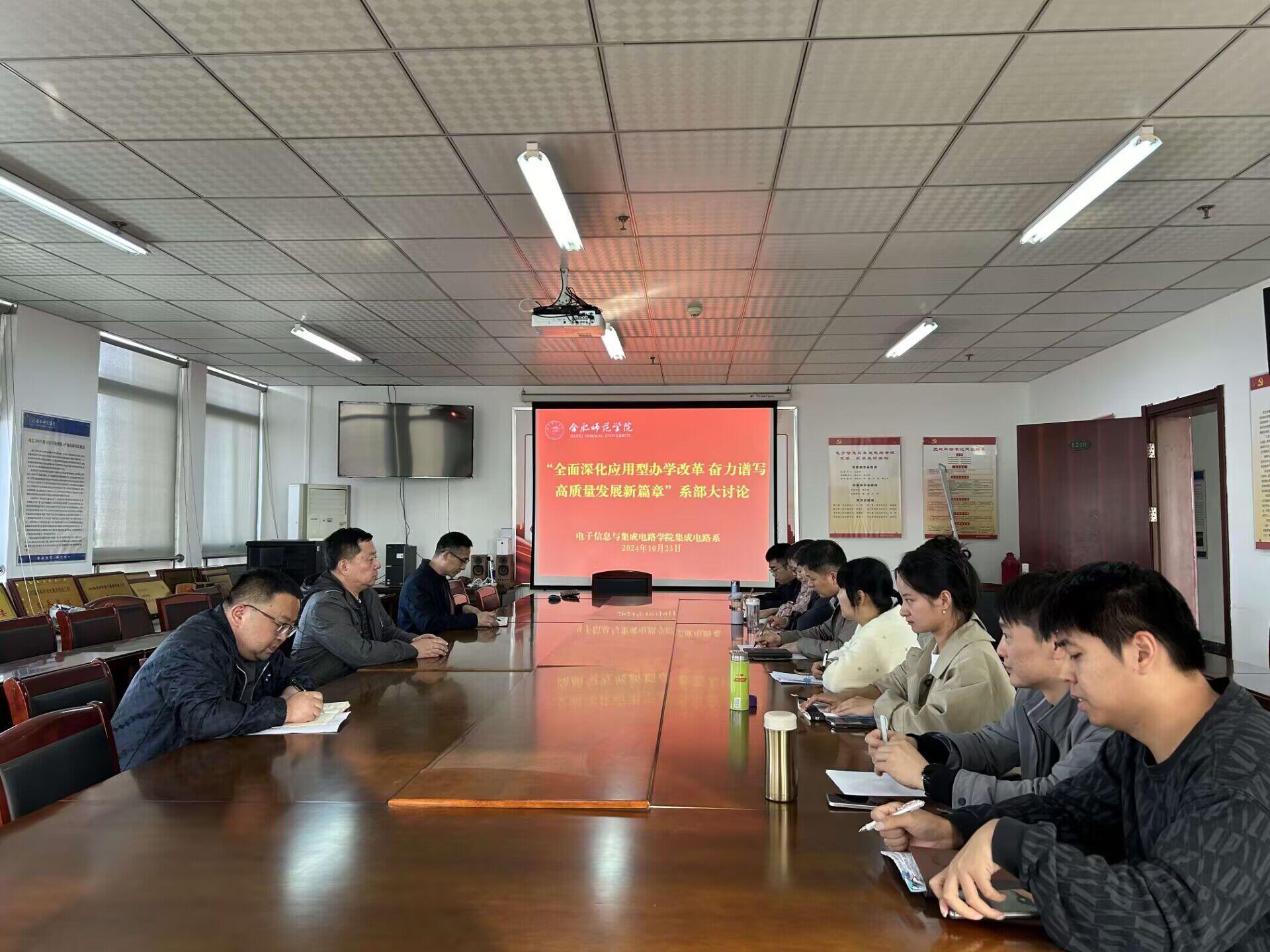 为响应学校“全面深化应用型办学改革,奋力谱写高质量发展新篇章”号召,根据“大调研大讨论大行动”实施方案,10月中下旬以来,电子信息与集成电路学院组织各系部聚焦高质量发展,陆续召开了研讨会、主题沙龙,学院领导班子、全体教师全程参与。