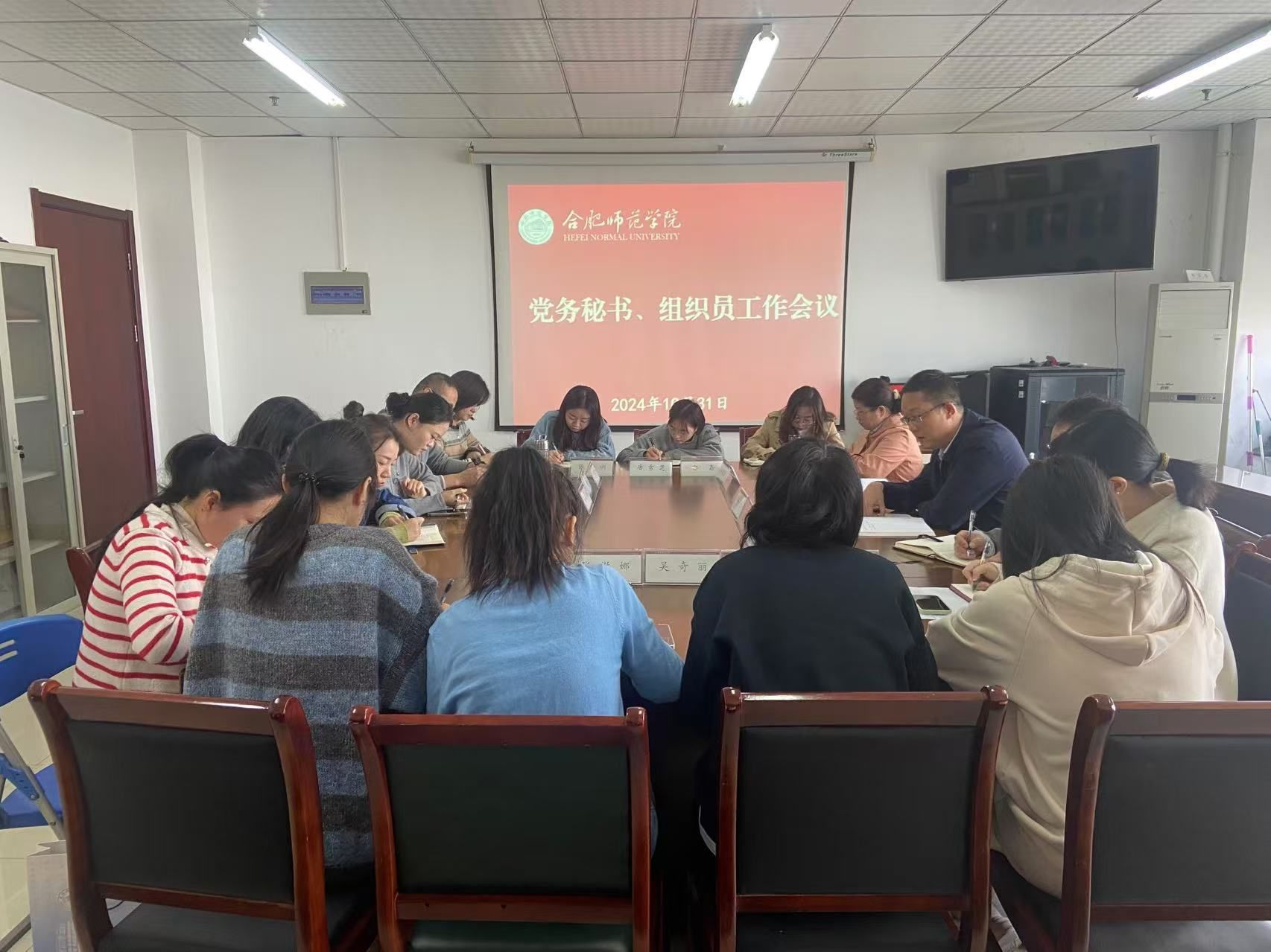 10月31日上午,组织部在行知楼1802会议室召开专职组织员、党务秘书工作会议,各二级党组织专职组织员、党务秘书参加会议。