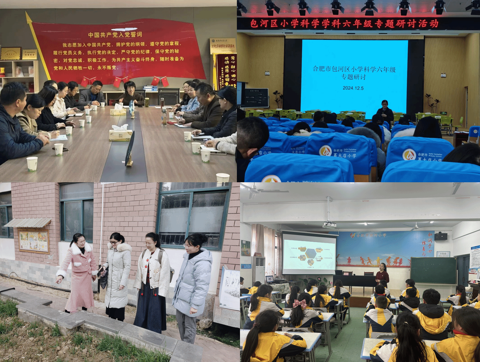 2024年11月,党支部书记郑斌在合肥一中教育集团北城校区作“产教融合与学生培养”交流报告,为高中学生能力培养与大学教育有效对接提供宝贵建议。同年12月,党支部与合肥市望湖小学教育集团等学校开展主题研讨活动,调研基层教师科学教学中的问题与需求,提出解决方案,并积极参与小学科学教育专题研讨,为小学科学教学贡献高校科研力量。