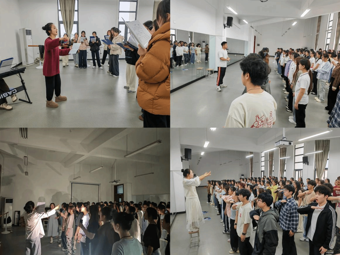 荣誉的背后是学院合唱团成员们长达两个多月的不懈努力。团队秉持"专业+"的训练标准,每周坚持三次集中排练,从发声技巧到情感表达都力求完美。学院专业声乐教师唐银指导队员们掌握科学的呼吸方法,分团委书记吴勇老师组织学生会不断给合唱团加油打气,并做好后勤服务保障,学生干部们还自发成立"互助小组",利用课余时间帮助队友们攻克高音部分的演唱难点。"每次排练都能感受到大家的进步,这种共同成长的过程特别珍贵。"2023级小学教育专业学生马炎在赛后分享道。