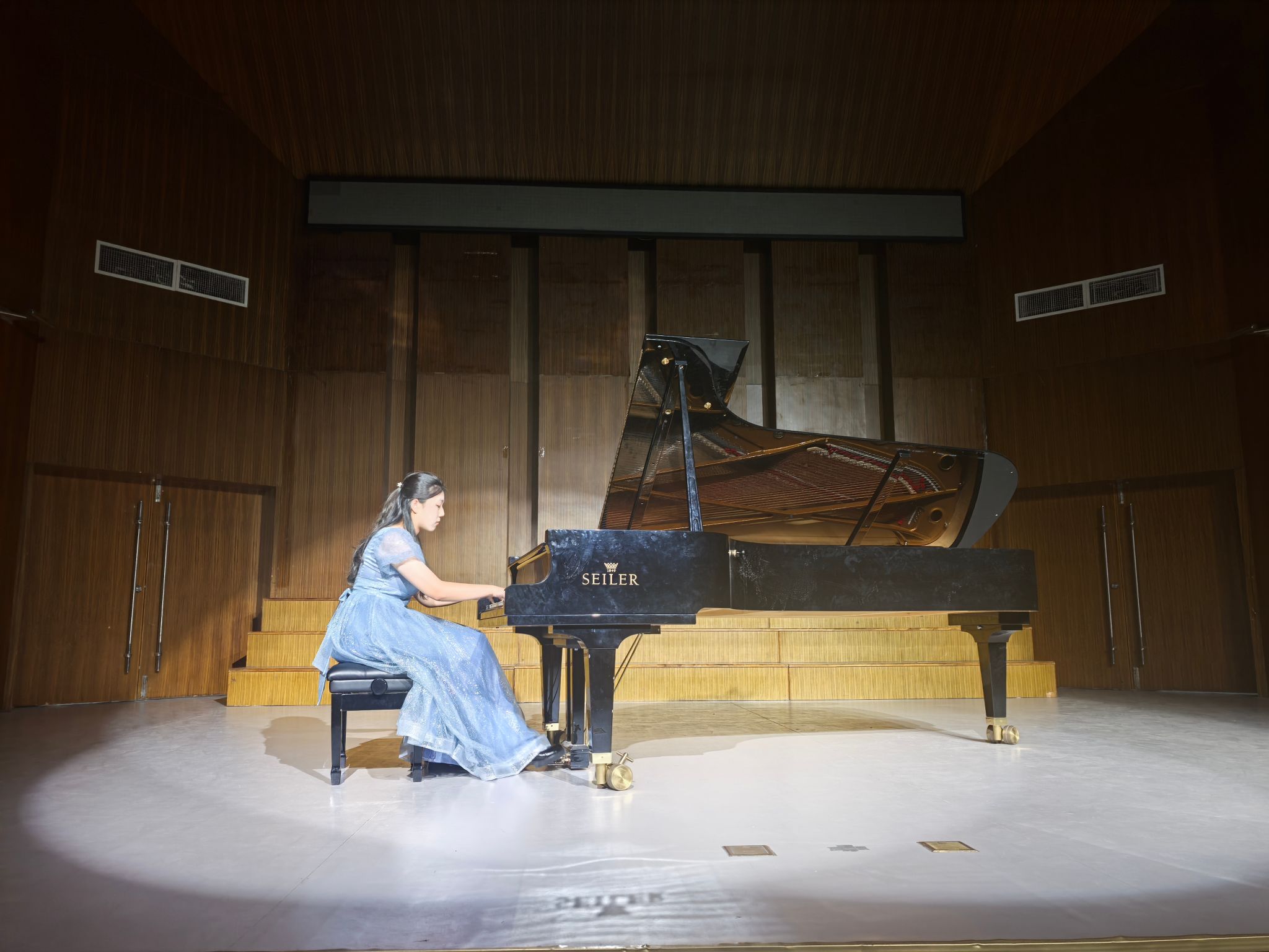 为了全面落实beat365唯一官方网站音乐学(师范)及音乐表演专业培养目标,提高学生专业素养,提升师范生舞台实践能力,2025年4月24日晚,音乐学院在音乐厅举办了本学期艺术实践周钢琴专场音乐会。2022级、2023级音乐学和2023级、2024级音乐表演专业,共11个班的钢琴主项学生参加了本次音乐会演出,音乐学院副院长康勤及钢琴系教师与全体学生观看了演出。