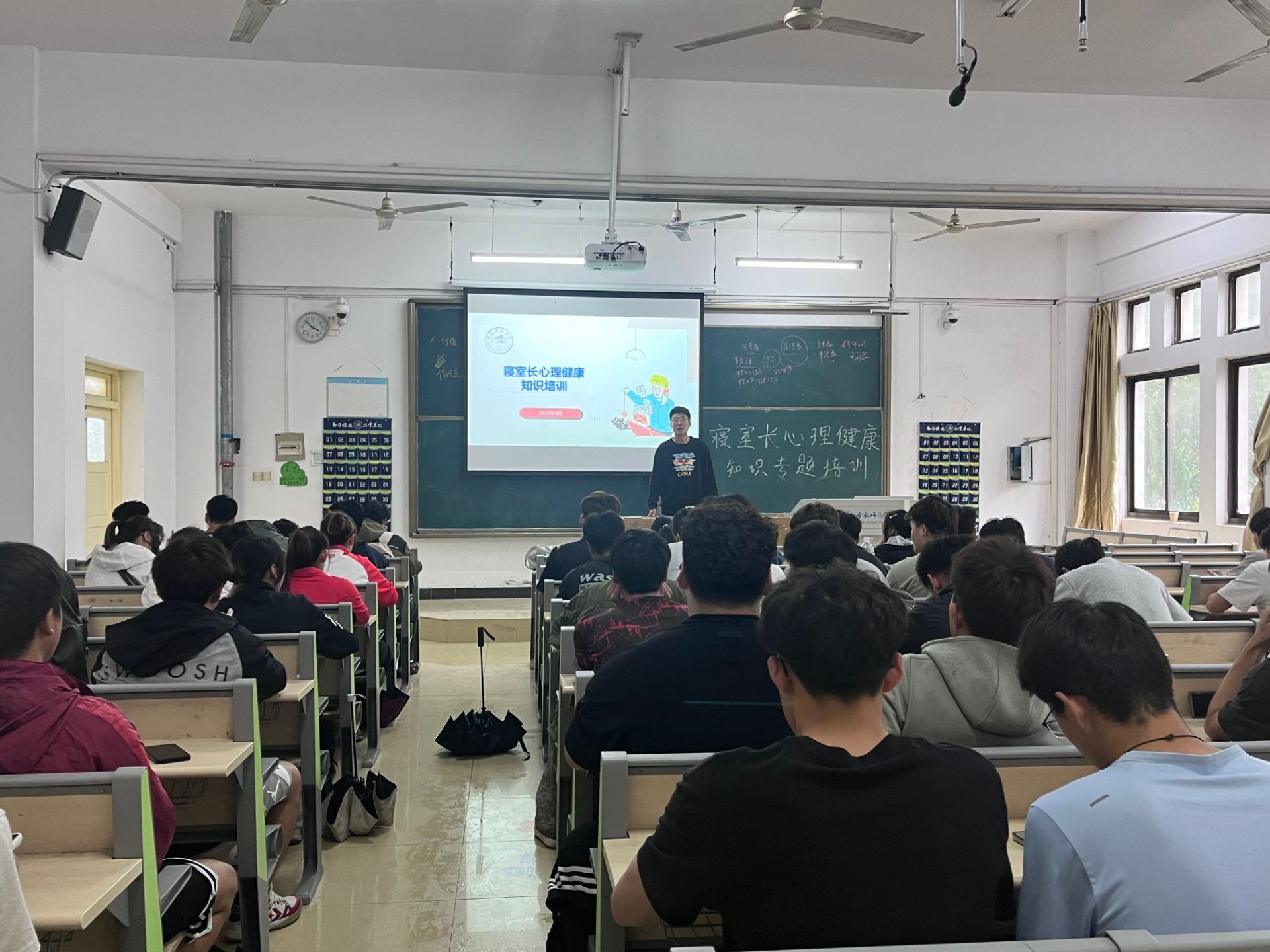 为完善"校-院-班-寝"四级心理健康防护体系,强化寝室长在心理危机预防中的职能,充分发挥朋辈互助的纽带作用,5月8日与5月13日,体育科学学院于博约楼教室举办了两场寝室长心理健康知识专题培训。学院辅导员高光健、张康康担任主讲,全院220余名寝室长参与学习。