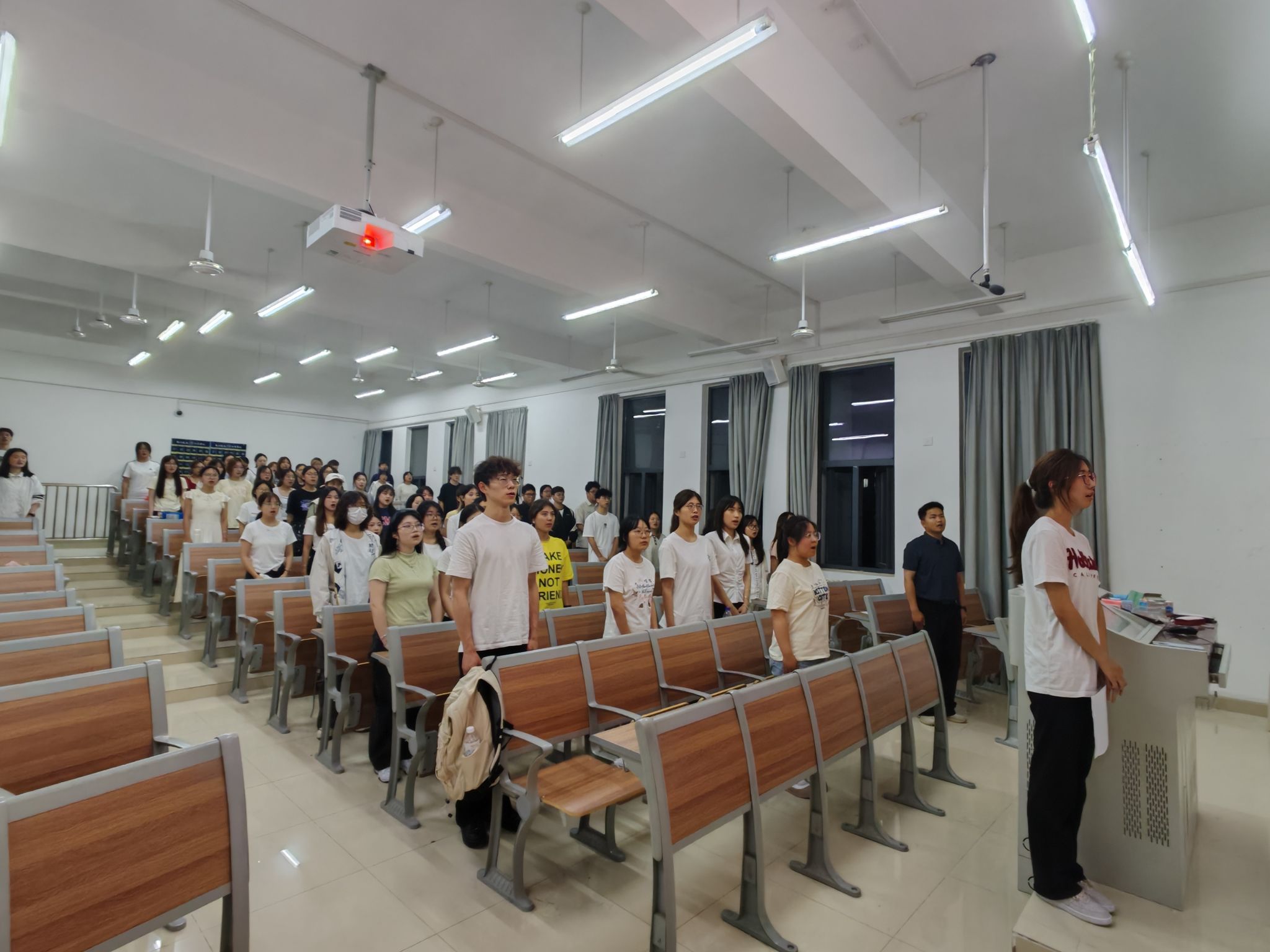 会议在嘹亮的《光荣啊!中国共青团》歌声中落下帷幕。(文学院:米娜瓦尔)