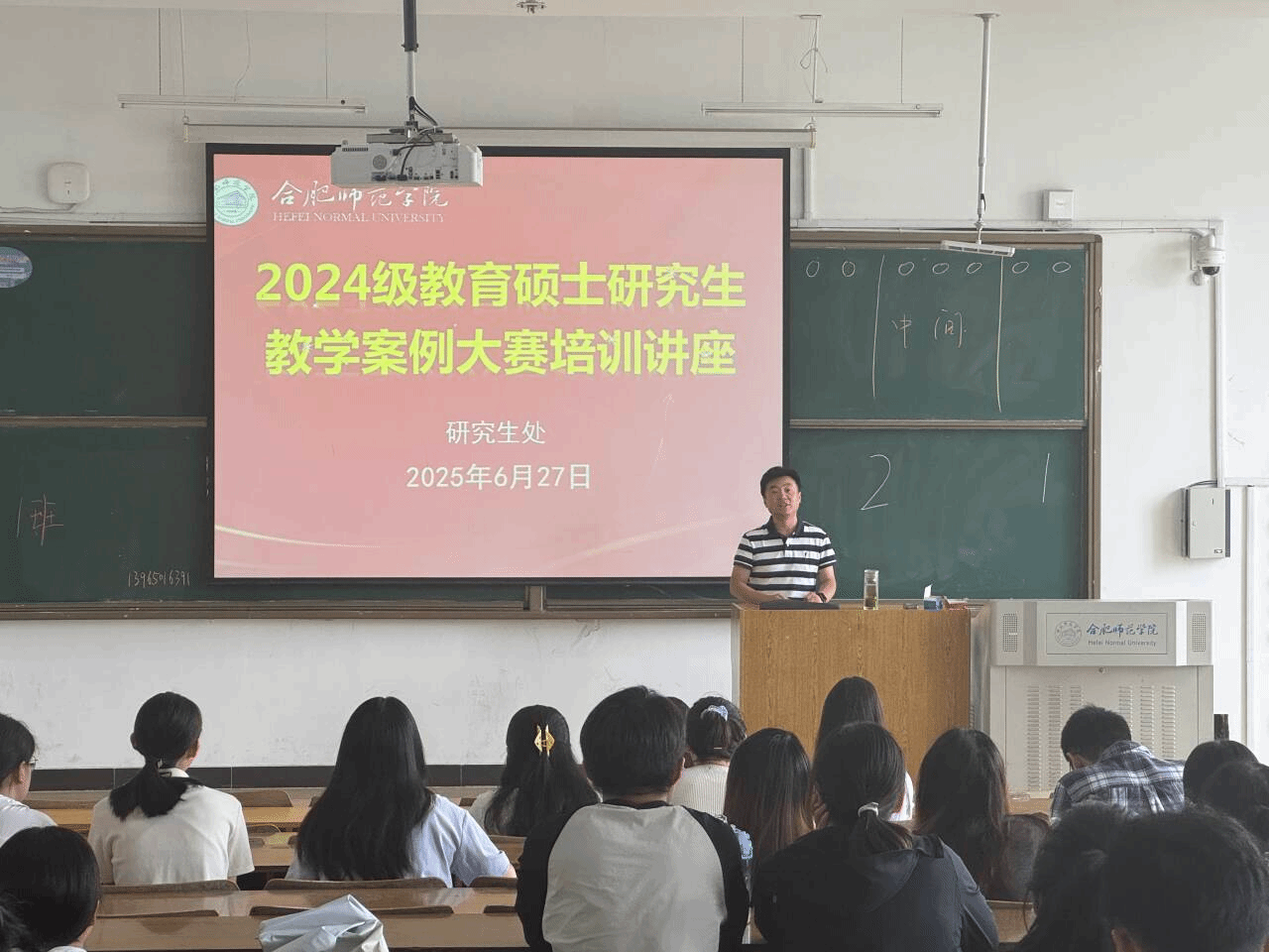 为进一步推动教育硕士研究生教学案例大赛工作,切实提升研究生教学案例撰写质量,6月27日,研究生处在博约楼208教室开展教育硕士研究生教学案例大赛培训讲座。本次讲座邀请了数学与统计学院的沈南山教授作为主讲人,2024级全体教育硕士研究生参加了讲座,讲座由研究生处副处长黄浩主持。