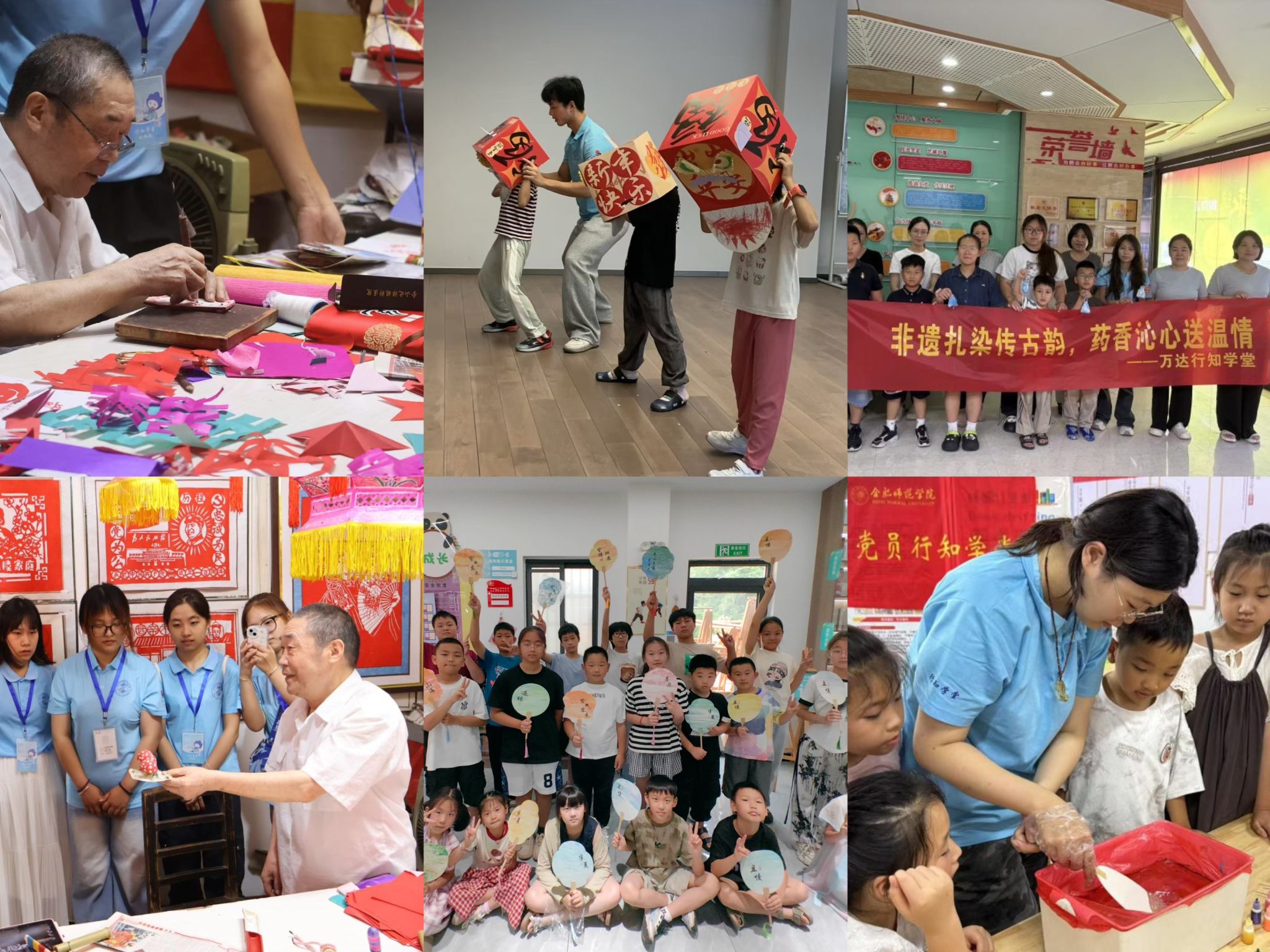 此外,教育与心理科学学院利辛党员行知学堂开展“师生一同绘漆扇,手摹心传韵更生”实践活动、文学院锦绣方兴社区行知学堂开展“童趣剪纸,非遗传承”实践活动、美术与设计学院蚌埠万达社区行知学堂开展“染韵药香 非遗礼赞”扎染教学课程等“非遗文化传承与保护”主题实践活动。
