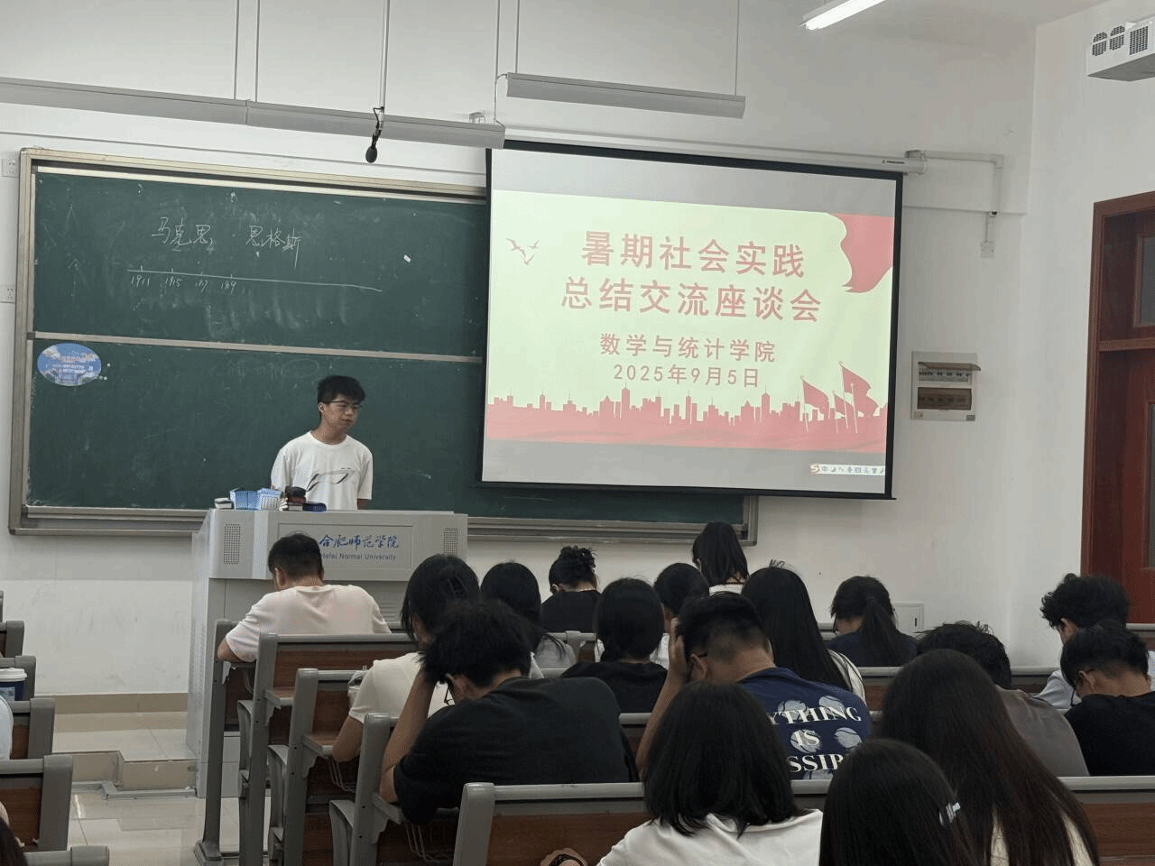 为全面总结2025年暑期社会实践成果,深化实践育人成效,9月5日,数学与统计学院在滨湖校区召开暑期社会实践活动总结交流座谈会暨行知学堂考评会。学院党委书记穆娟、分团委书记刘全亚、辅导员王志、齐璇、行知学堂指导教师许娟及65名学生代表参会。