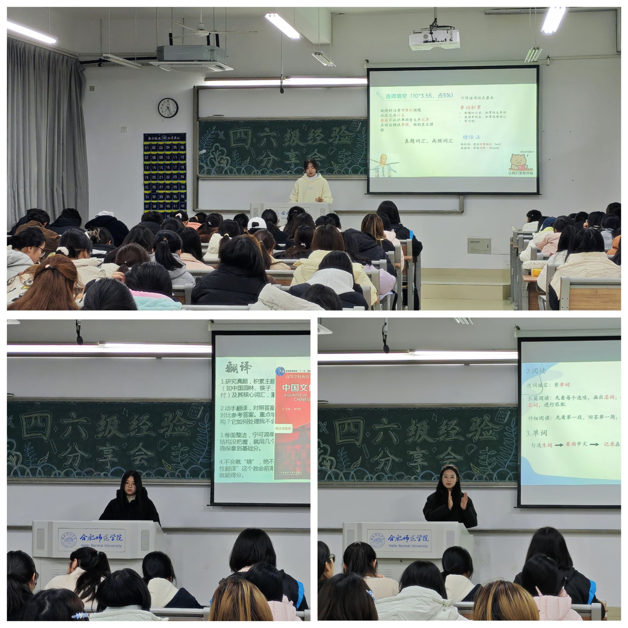 为助力马院学子高效备考四六级考试,厘清备考思路、掌握答题技巧,11月17日,马克思主义学院于博学楼B309举办“朋辈共奋进 冲刺四六级”英语四六级经验分享会。活动邀请2024级四级高分学子方嘉媛、丁彤、龚雯雯作为分享人,2025级全体学生参加。