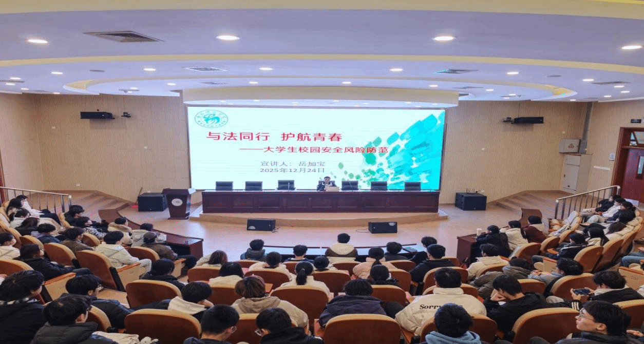 为增强学生法治观念与安全防范意识,筑牢校园安全防护网,12月24日,物理与材料工程学院在学术报告厅举办“与法同行 护航青春——大学生校园安全防范”主题普法宣讲活动。本次活动由学院特邀具有法律知识与实务经验的辅导员岳加宝担任主讲,滨湖校区各年级各班学生代表参加。