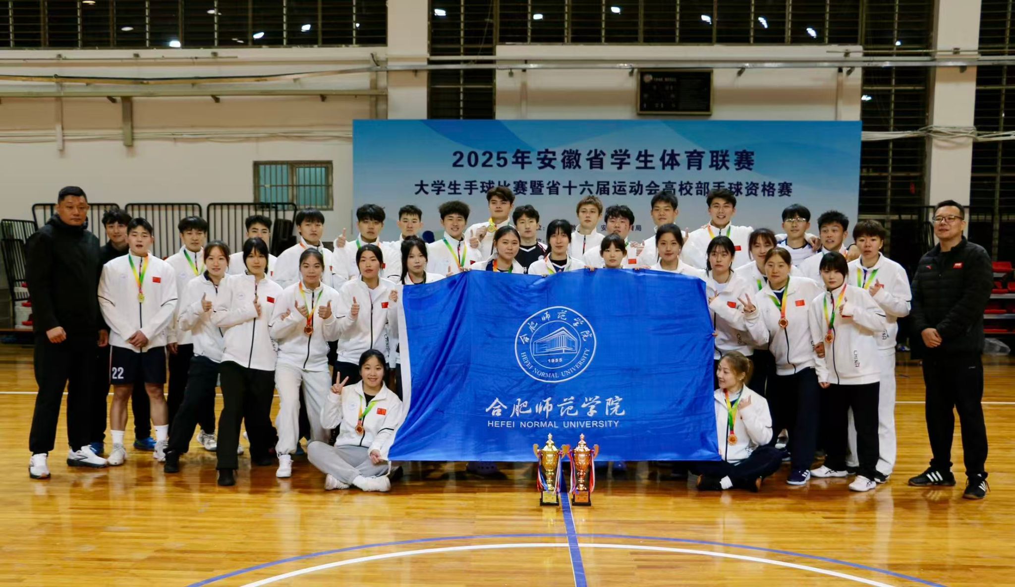 近日,由安徽省教育厅、安徽省体育局主办,安徽省学校体育协会执行,合肥工业大学承办的2025年安徽省学生体育联赛大学生手球比赛暨省第十六届运动会高校部手球资格赛在合肥工业大学体育馆举行。经激烈角逐,我校男子手球队勇夺丙组冠军,女子手球队取得丙组第三名的优异成绩。
