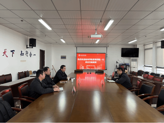 李晓翔对韩传龙一行的到来表示热烈欢迎,详细介绍了经管学院的发展历程、学科建设、科研管理、硕士点建设,以及学院在高层次人才引进与激励的做法。韩传龙详细介绍了宿州学院管理学院的发展情况,重点分享了该院在学科建设、平台打造、社会服务以及人才引进等方面的特色做法和经验。