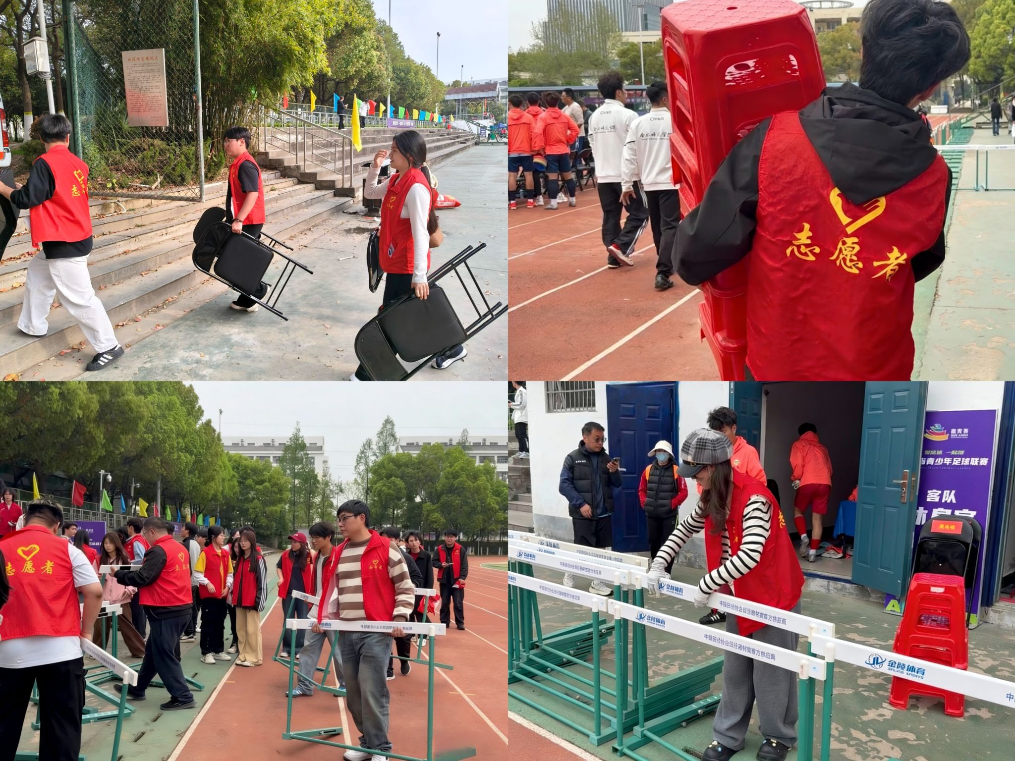 赛前,志愿者们完成了基本礼仪、场景模拟、秩序引导等岗位培训,积极提升足球赛事服务保障的适配性。活动期间,志愿者们分工明确,以细致周到的服务全力保障赛事平稳运行:在道路引导岗,他们手持指引牌为参赛队伍与观赛师生清晰指路,确保人员通行高效顺畅;在场内秩序维护岗,大家耐心劝导,及时排查安全隐患,严防无关人员进入比赛区域;在观众席秩序维护岗,规范观赛行为,营造安全文明的观赛氛围;在赛后物资规整岗,志愿者们迅速清点器材、清理场地,高效完成赛后复原工作。