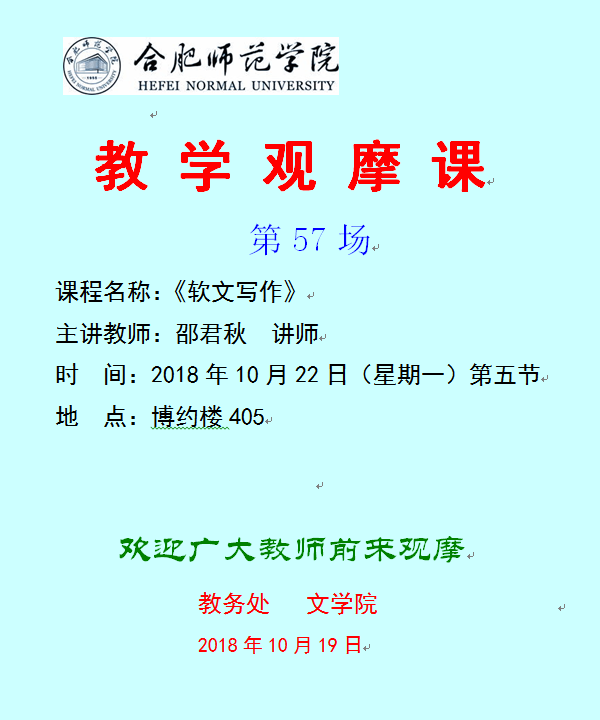 本科教学观摩课(第57场)通告