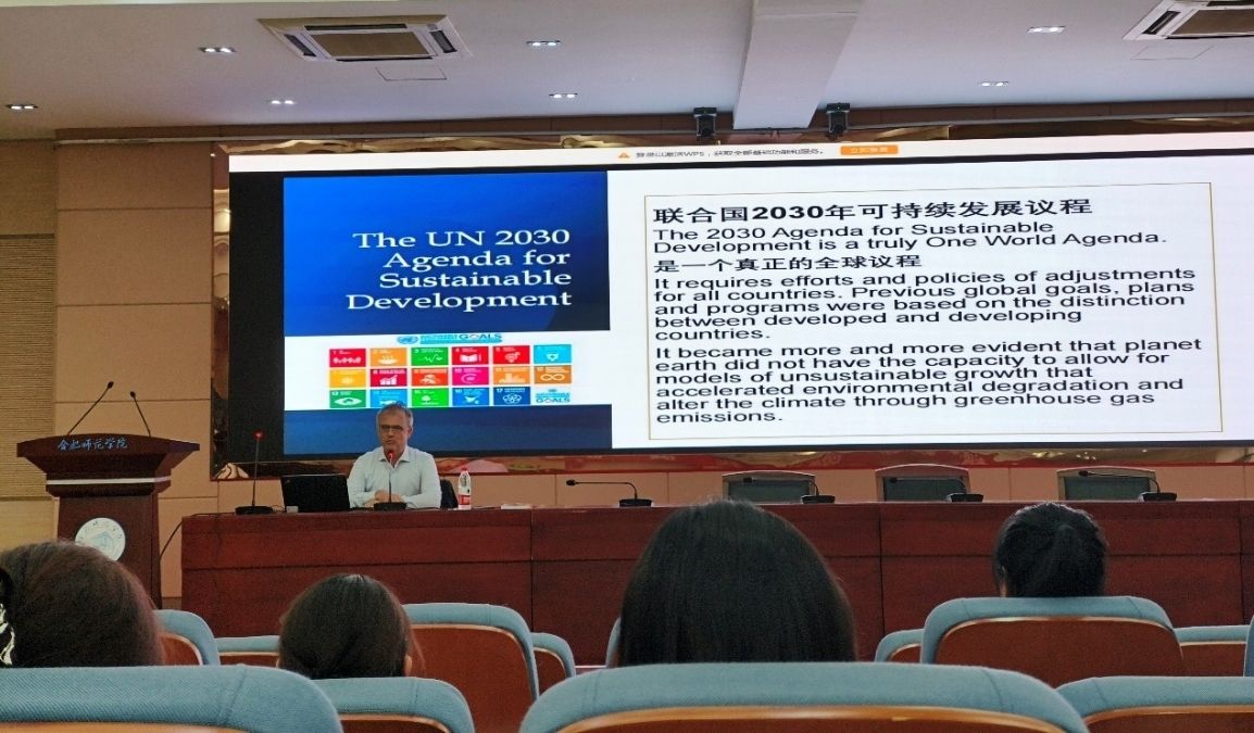 本网讯 为拓展国际视野,增进国际交流,9月20日下午,德国柏林自由大学可持续发展专家Berthold Kuhn应邀为我校师生作“国际合作语境下的可持续发展”的专题讲座。讲座于beat365唯一官方网站锦绣校区学术报告厅举行,科研处处长胡昂、国际交流与合作处副处长蒋道华出席,讲座由外国语学院研究生部主任强云老师主持,学校相关院系师生参加了本次讲座。