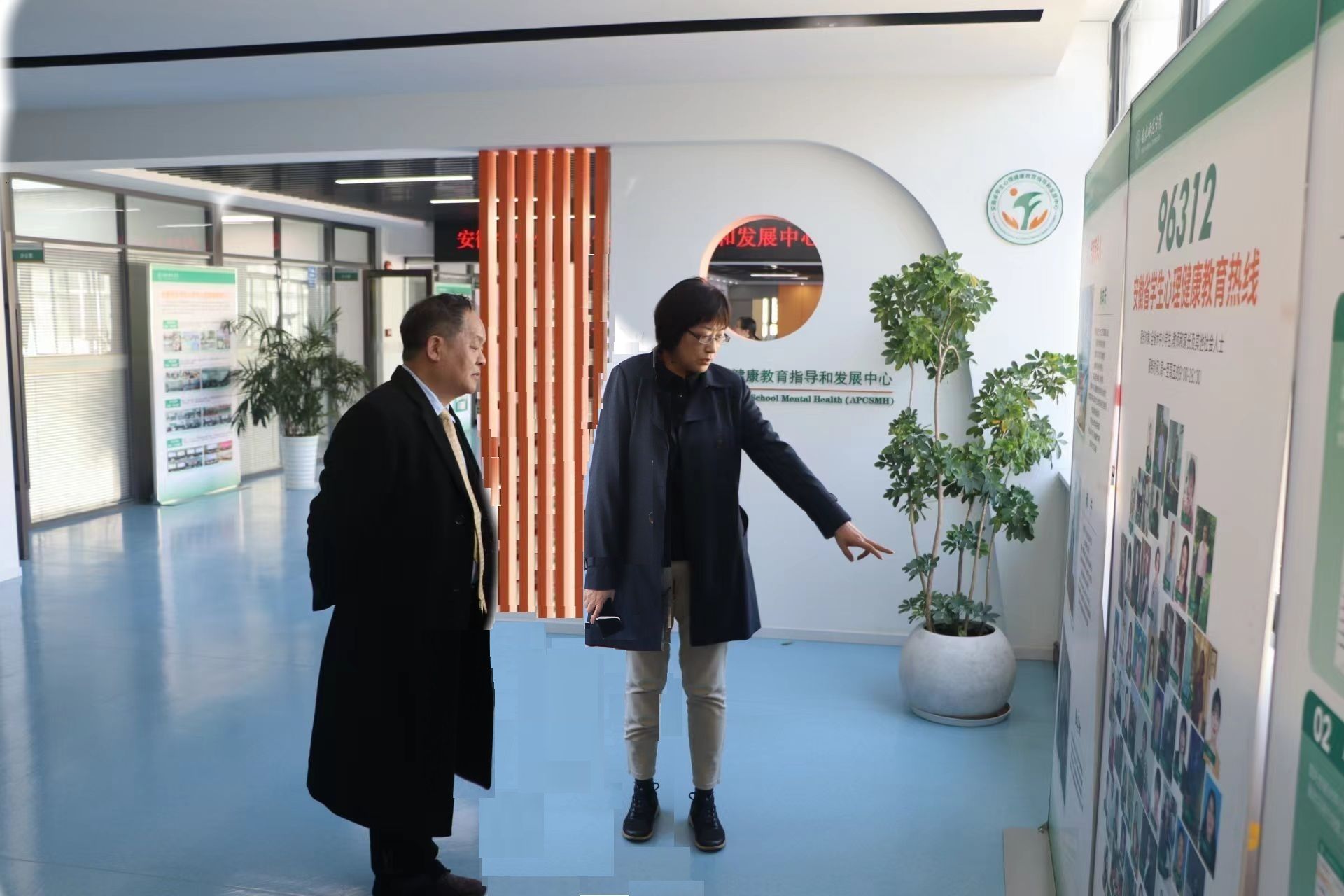 院党委副书记、院长方东玲教授陪同吴明海参观了学院承建的省学生心理健康教育指导和发展中心、青少年心理健康与危机智能干预安徽省哲学社会科学重点实验室等平台,并介绍了学校学科专业建设、科研平台、申硕更大等情况。