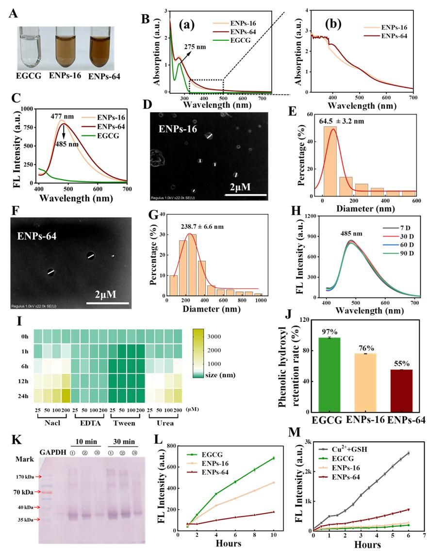 论文证明了在弱碱性条件下EGCG自氧化过程中形成了均匀的自组装纳米粒子(即ENPs),并揭示了维持ENPs稳定性的主要分子间驱动力。