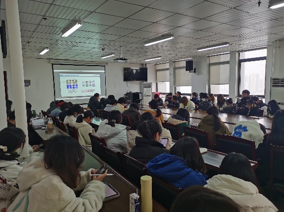 本网讯 12月3日,化学与化学工程学院在锦绣校区行知楼1402室举办了4场制药工程方向的线上、线下学术报告,徐佳琪、郑文隆、卢振华、袁新松等4位博士分别围绕自己的研究方向和与会老师、学生分享了自己的研究成果。副院长朱金苗出席讲座,制药工程专业80余名同学参加了学术讲座。