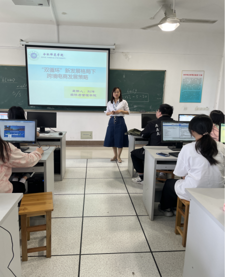 本网讯 5月20日下午,经济与管理学院副教授刘伟老师在锦绣校区逸夫楼B205教室举行了主题为“双循环新发展格局下跨境电商发展策略”的学术报告,2019级国际经济与贸易专业的学生到场聆听了报告。