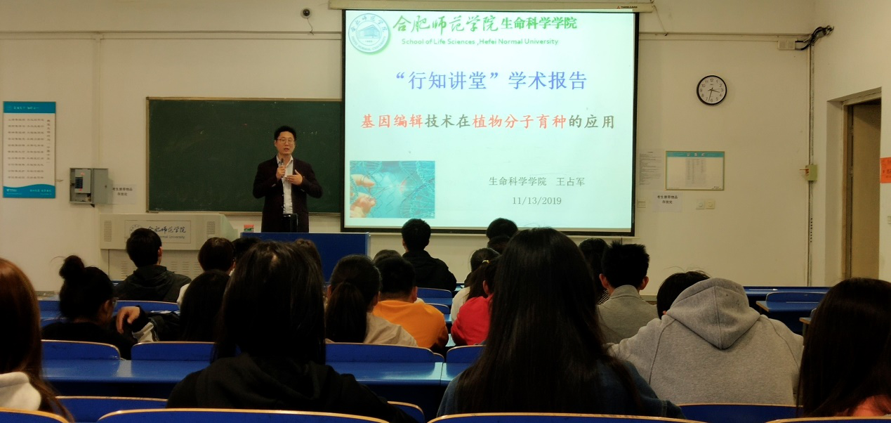 本网讯 11月13日下午,生命科学学院副教授王占军在逸夫楼A103教室主讲了题为“基因编辑技术在植物分子育种的应用”的行知讲堂学术报告,生命科学学院2018级学生参加了本次学术报告会。