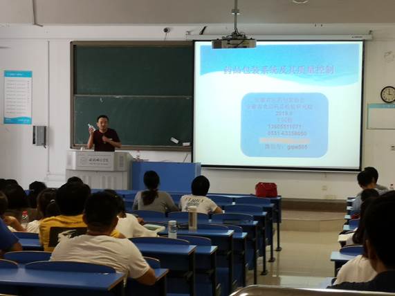 本网讯 9月12日,安徽省食品药品检验研究院药包材检测室主任王国勤,合肥工业大学化学与化工学院副院长、博士生导师丁运生教授来我校分别作题为《药品包装系统及其质量控制》《面向工程应用的科学研究与学生培养》的学术报告,讲座在逸夫楼西阶二教室举行。本次讲座由化学与化学工程学院制药工程系主任郑斌主持,制药工程专业教师、学生一同聆听学习。