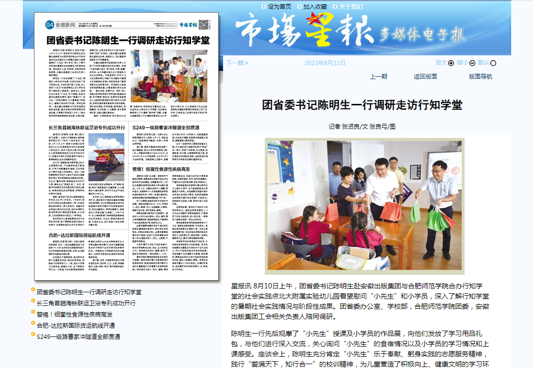 市场星报在8月11日第4版对此进行了报道。(院团委)