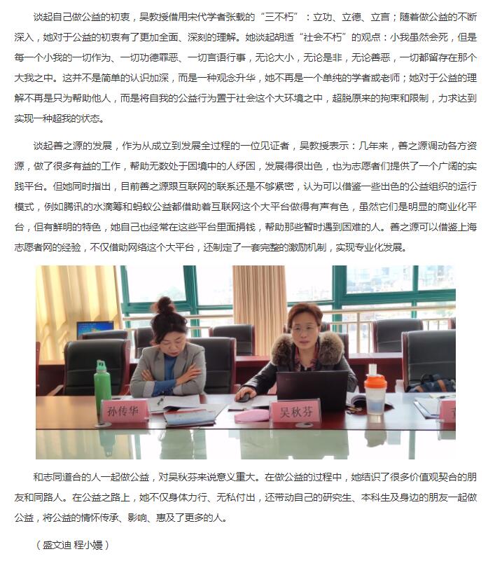 8月18日,安徽网以《安徽星级志愿者系列访谈‖吴秋芬:大学教授的公益之路》为题,对吴秋芬教授进行了报道。