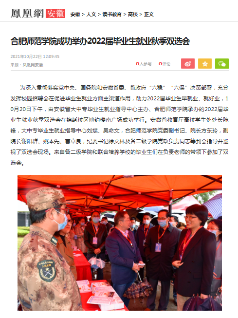 10月22日,凤凰网安徽对此进行了报道。(就业创业工作处)