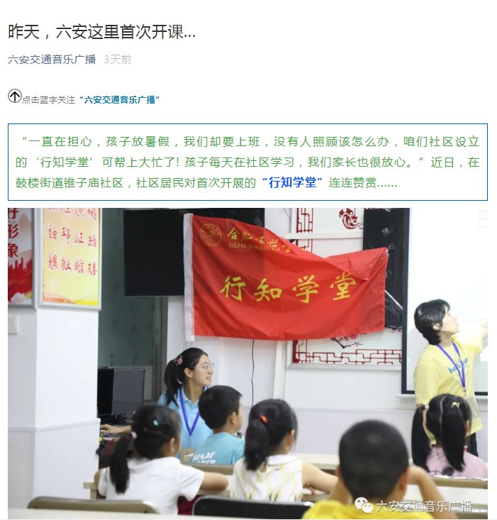 7月13日,六安交通音乐广播对此进行了报道。(教师教育学院:王磊)