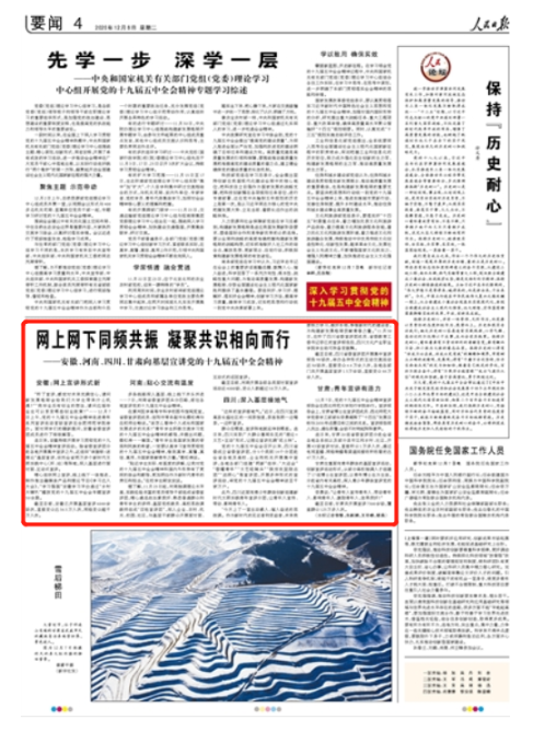 人民日报以“网上网下同频共振 凝聚共识相向而行”为题对本次活动进行了报道。(新闻中心)
