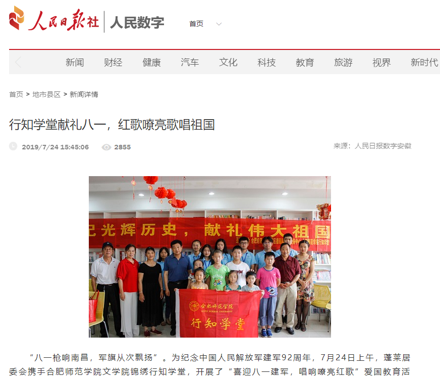 人民日报“数字安徽”对此进行了连续报道。(文学院)